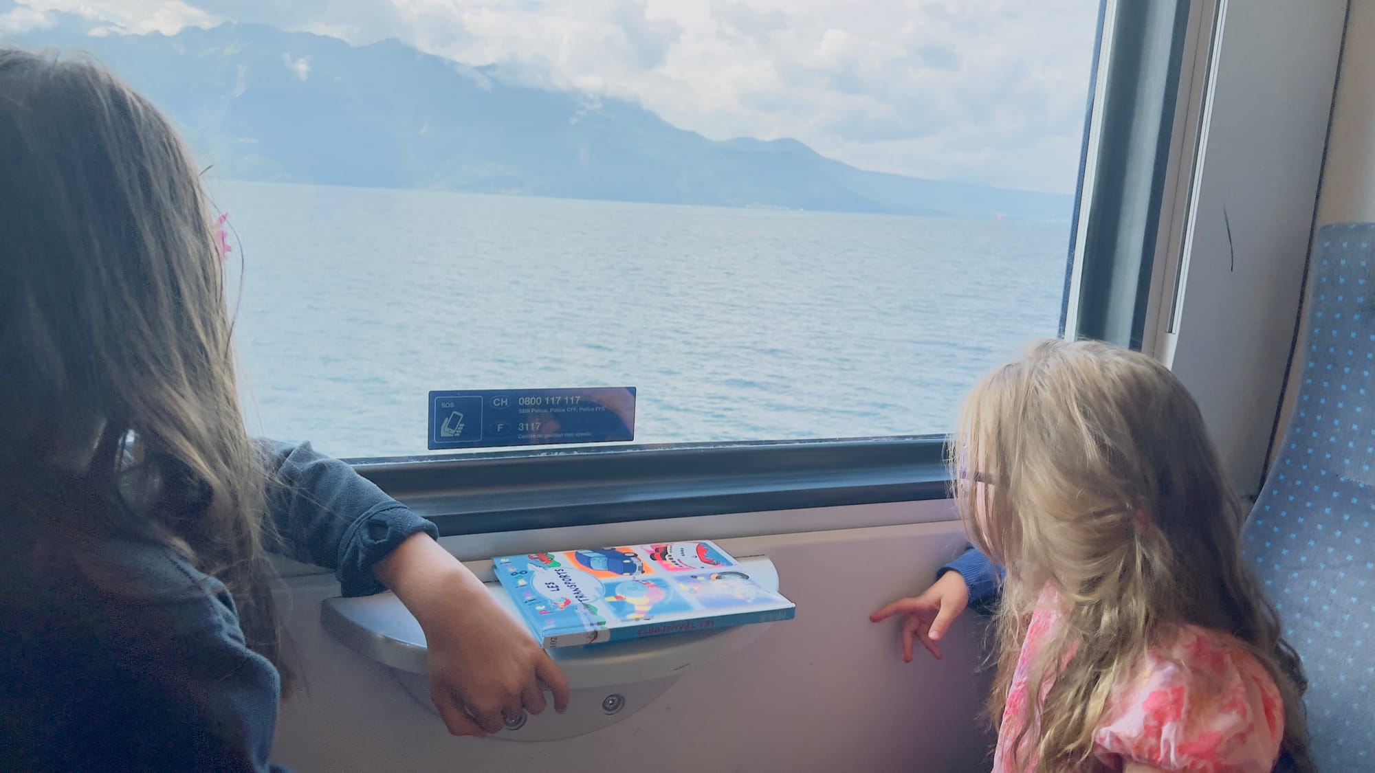 Après un café sur le balcon à 14° et un bon petit-déjeuner, c’est la descente vers la plaine puis le train jusqu’à Lausanne, avec un arrêt à Aigle pour laisser l’aînée chez grand-parrain et grand-marraine. Aujourd’hui, ce sont les deux cadettes qui m’accompagnent en classe.