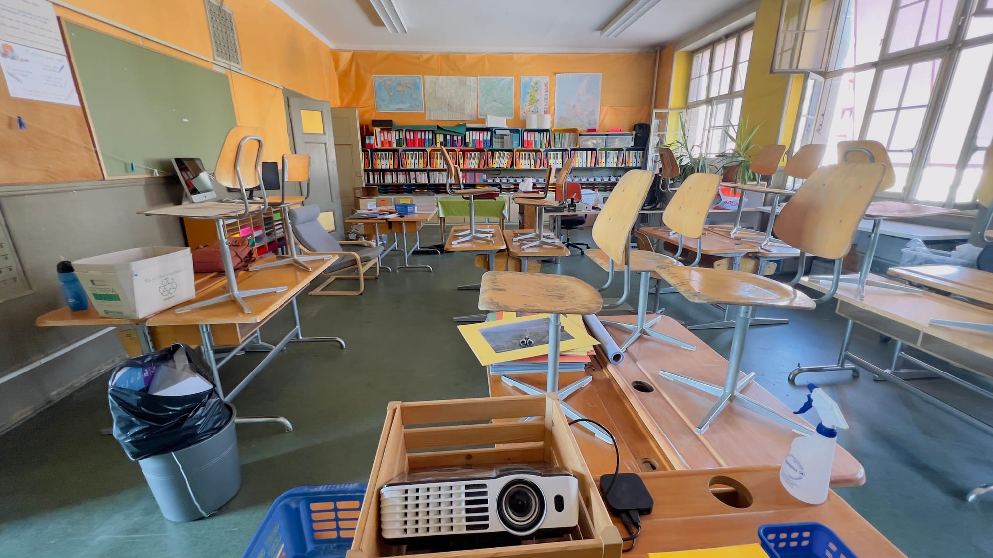 Le projecteur a été replacé avec une installation plus légère mais tout aussi efficace. Notre concierge remplaçant a eu l’amabilité de retirer les anciens supports des antiques cartes de géographie. C’est bien plus aéré et agréable !