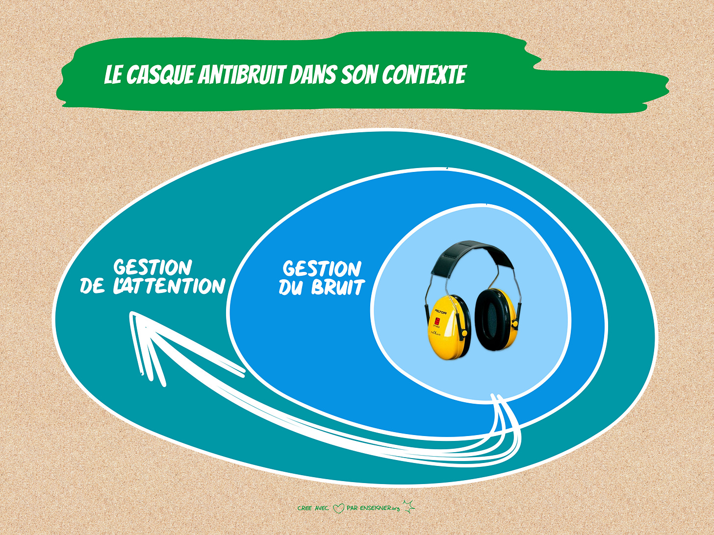Le casque antibruit doit rester un dispositif parmi tous ceux qui permettent de favoriser l’attention et de réduire les distractions.