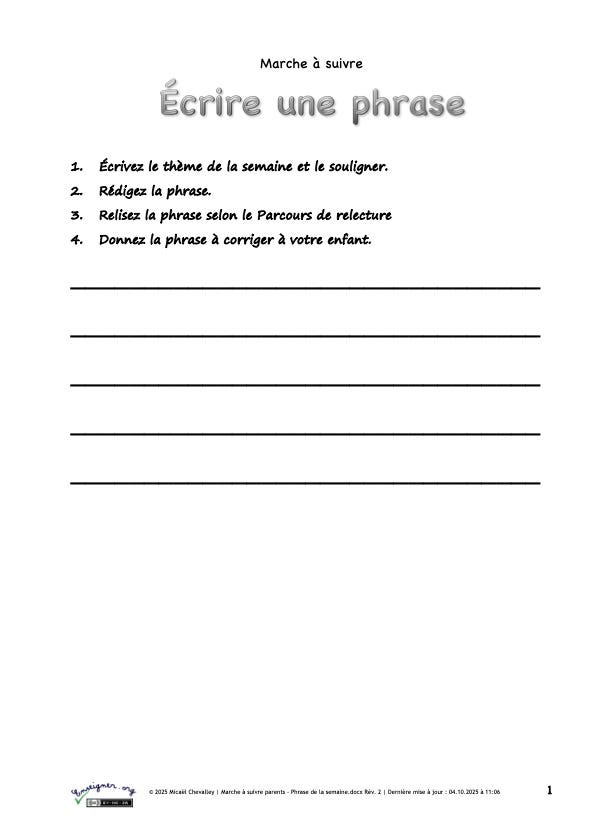Écrire une phrase et la corriger à la manière de la phrase de la semaine