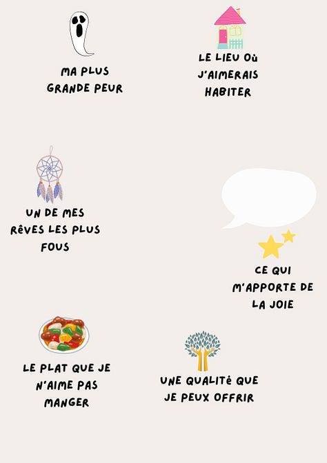 Compléter la carte d’identité préparée par ma collègue nouvelle arrivée en classe pour faire connaissance