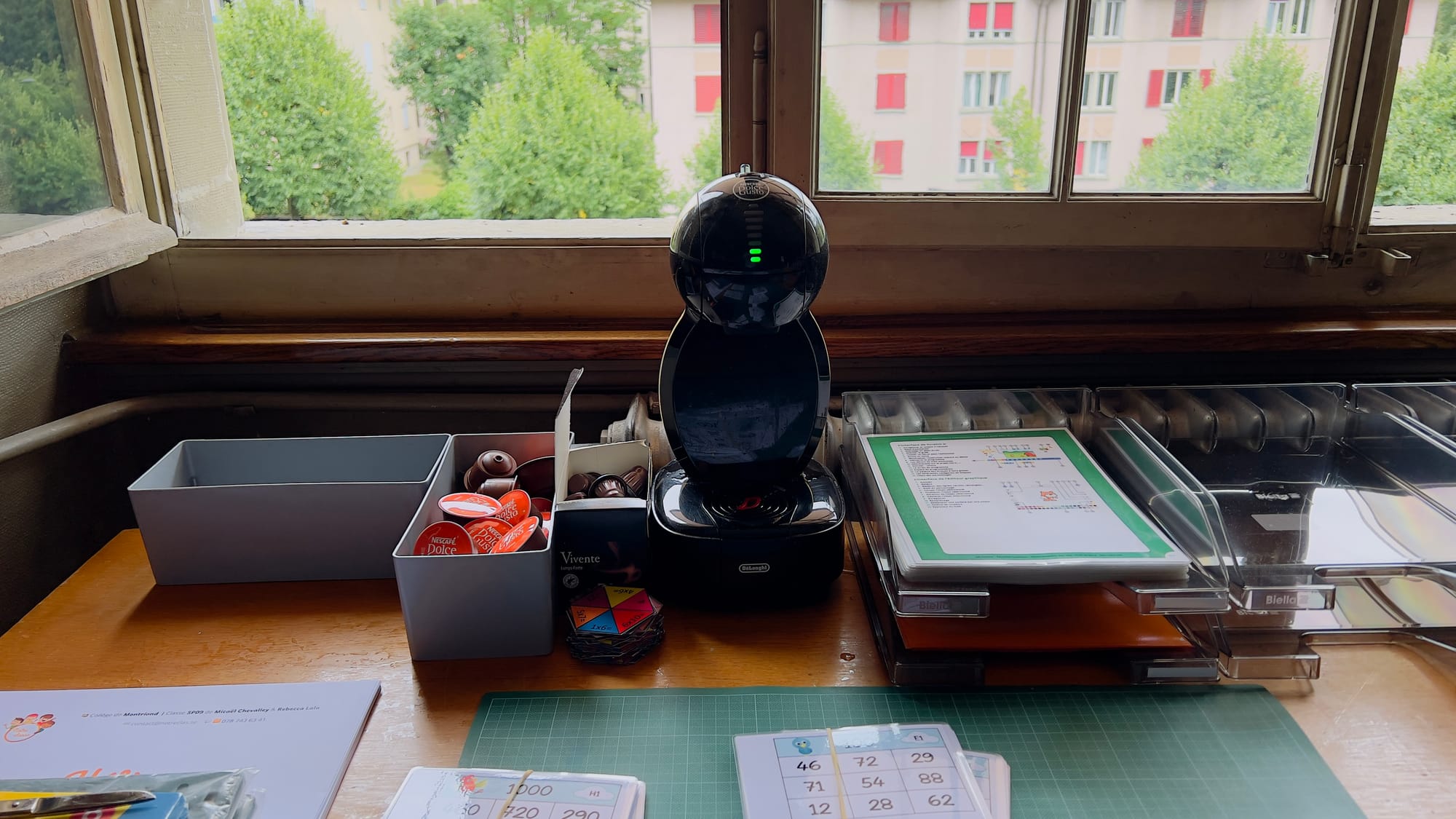 Après ma journée de création hier, j’ai de quoi travailler aujourd’hui. Mauvaise idée ! Un collège n’ayant pas encore le matériel d’impression, toute l’équipe a investi notre petit économat ! Moi qui n’aime pas être entouré de près, bousculé, et limité dans mes interactions, je suis servi ! Promis, je garderai mes bonnes habitudes : tôt le matin, il n’y a personne !